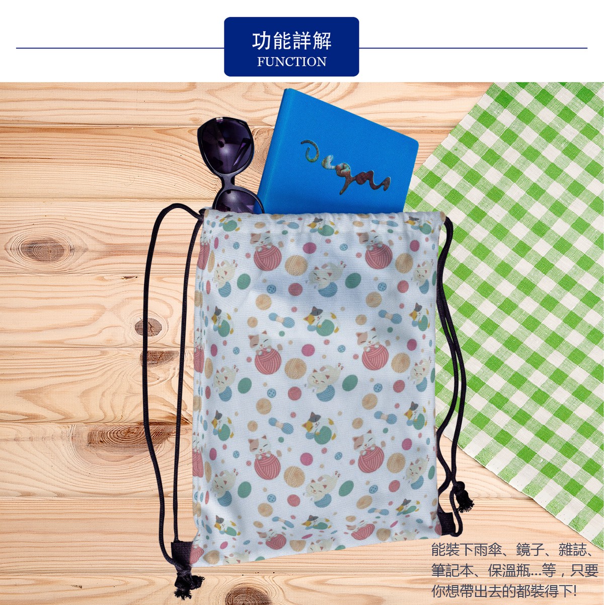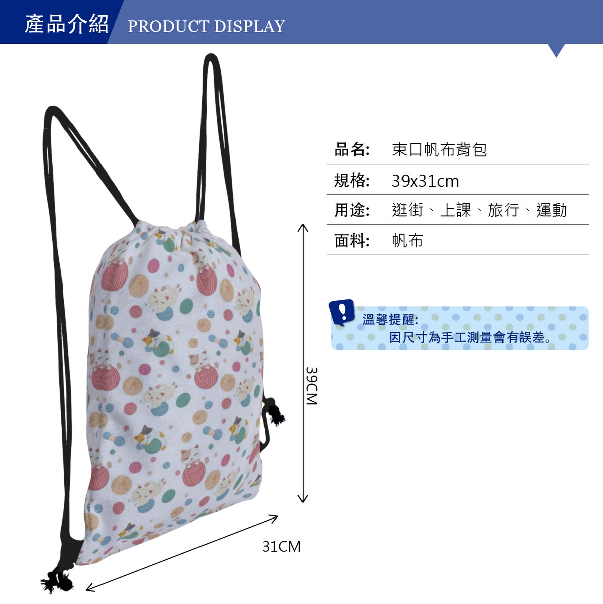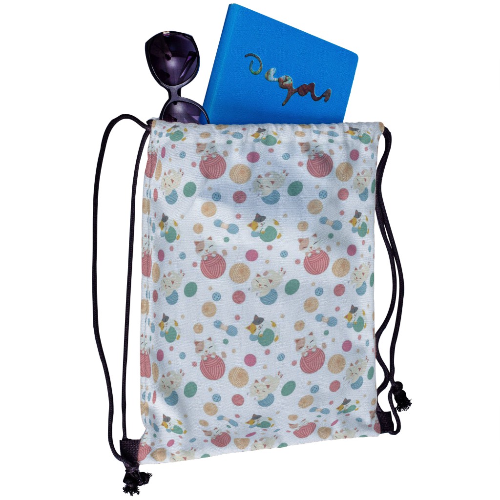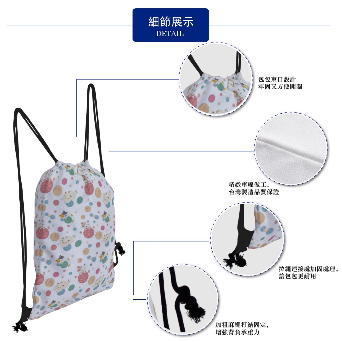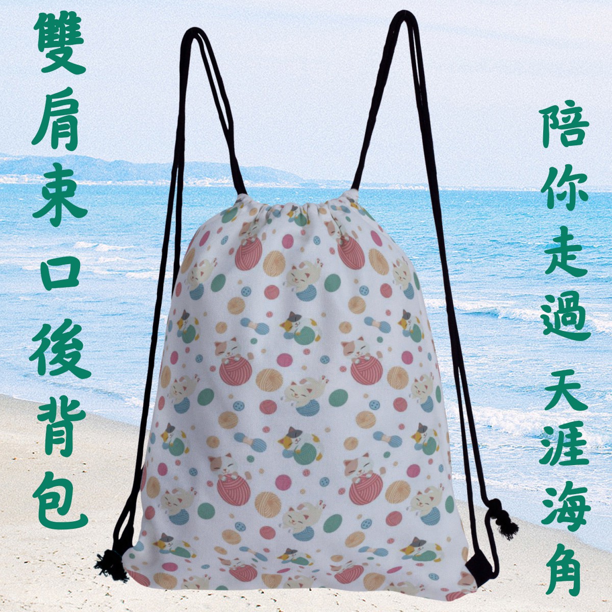毛線貓帆布束口背包材料包