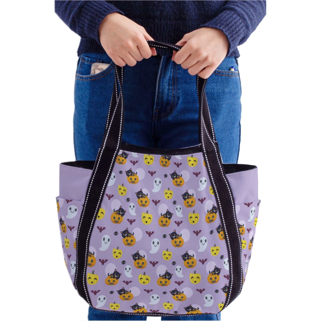 南瓜上貓和蝙蝠托特單肩包材料包