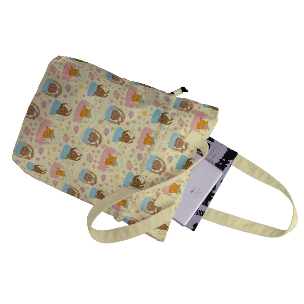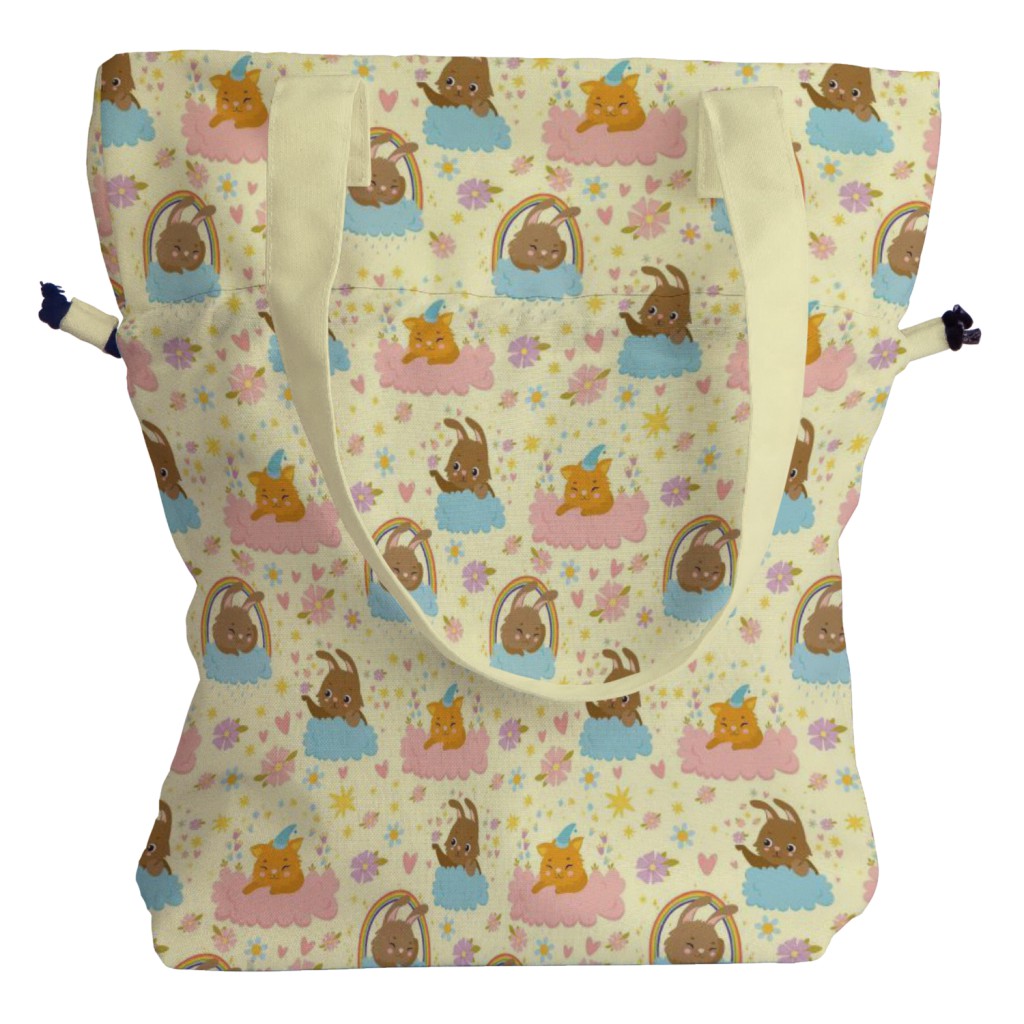 雲朵兔和貓帆布束口背包材料包