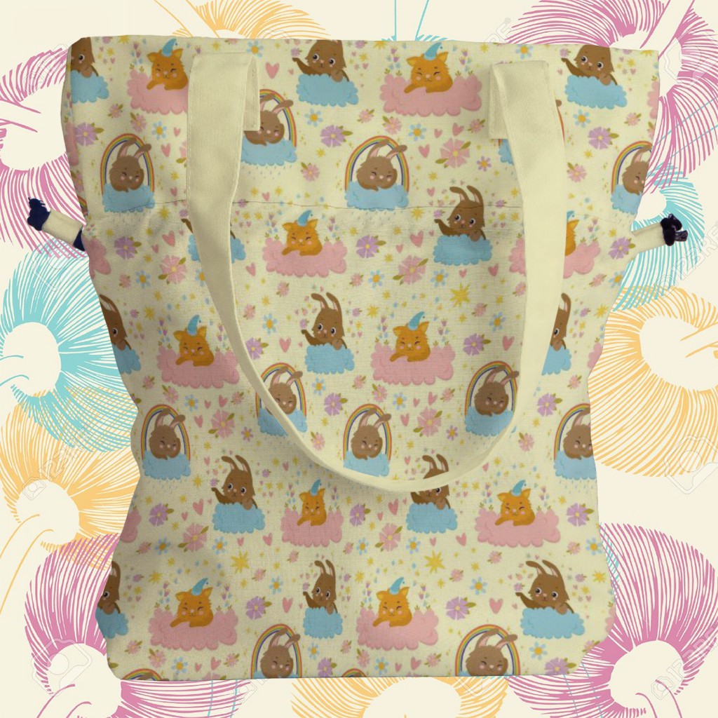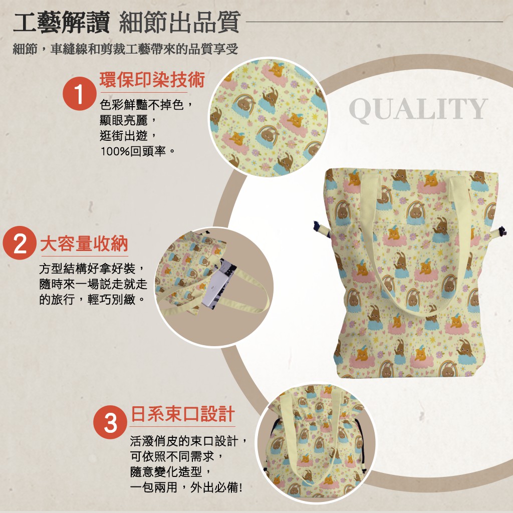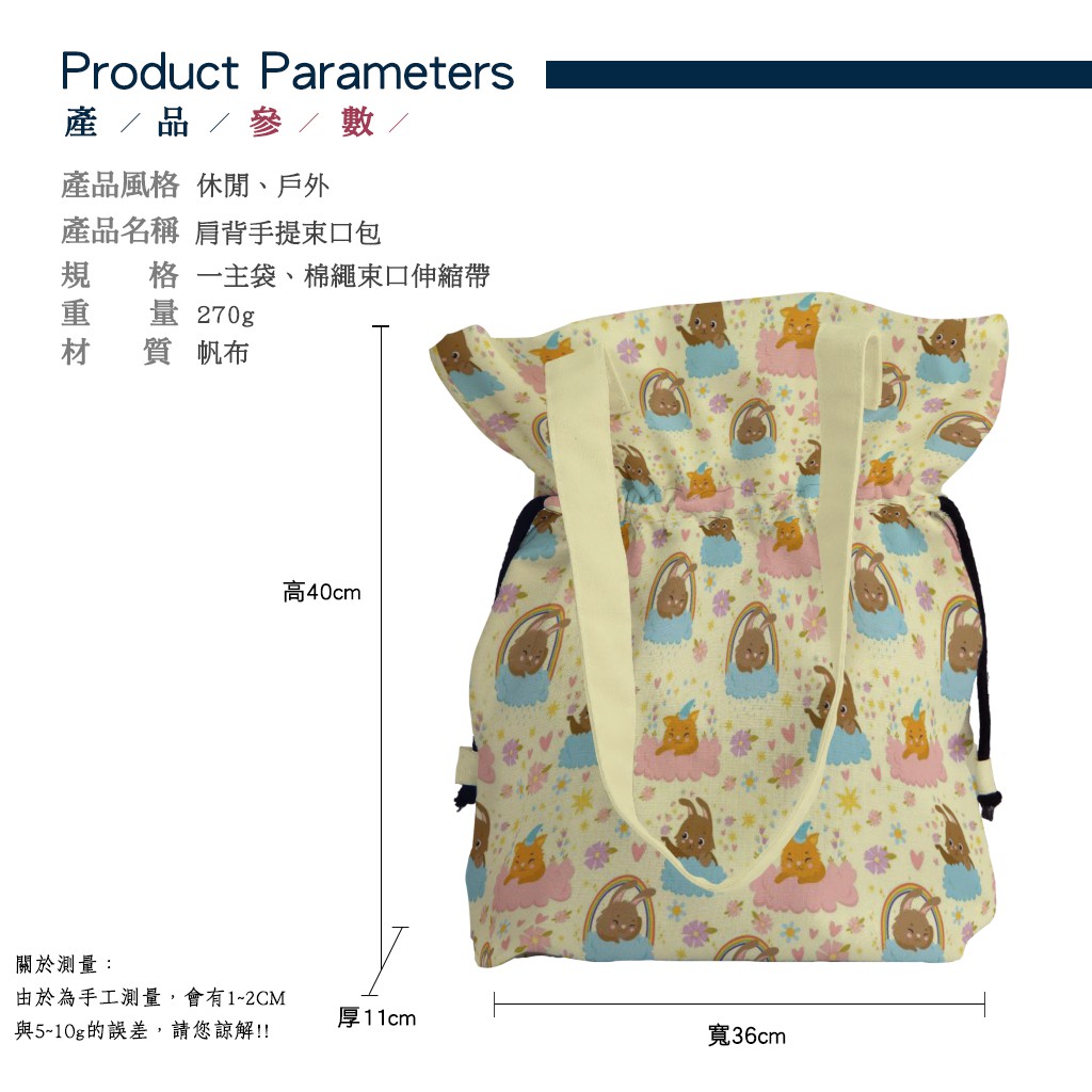 雲朵兔和貓手提束口包材料包