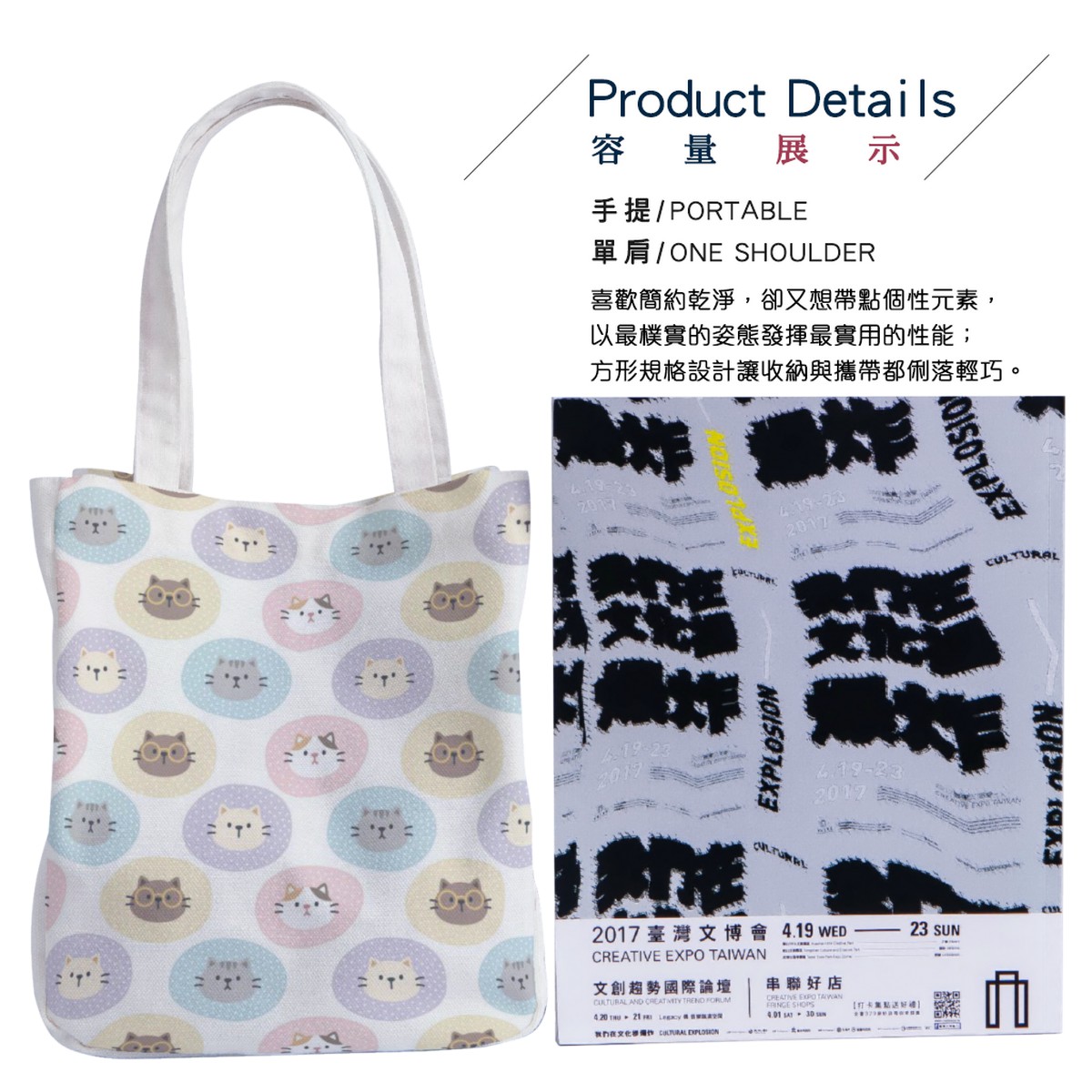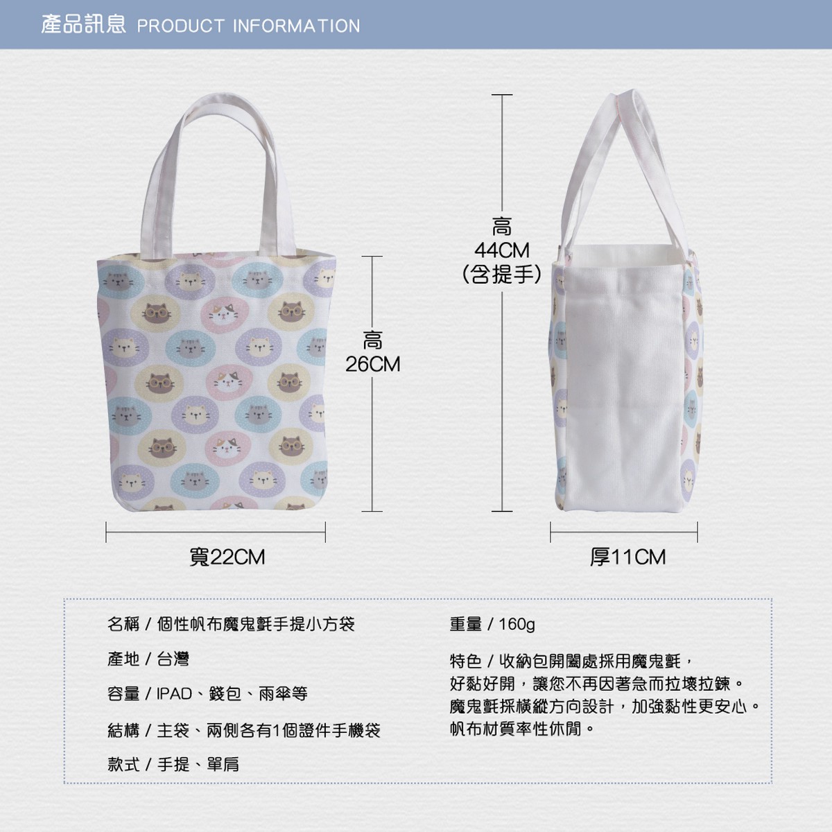 可愛的貓咪托特單肩包材料包