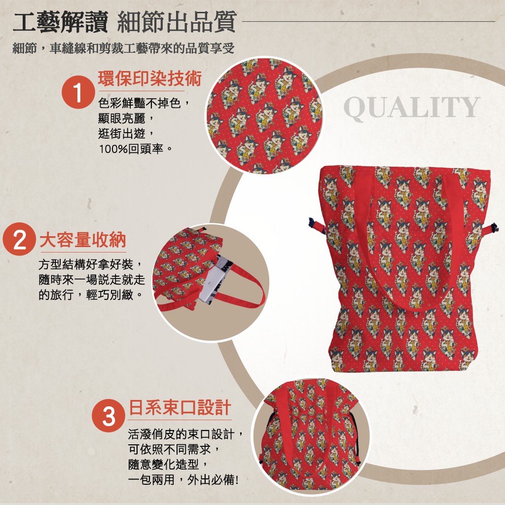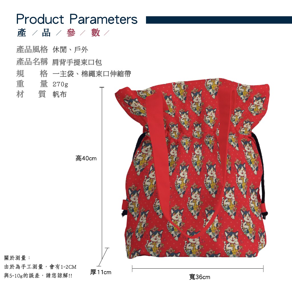 福氣貓手提束口包材料包