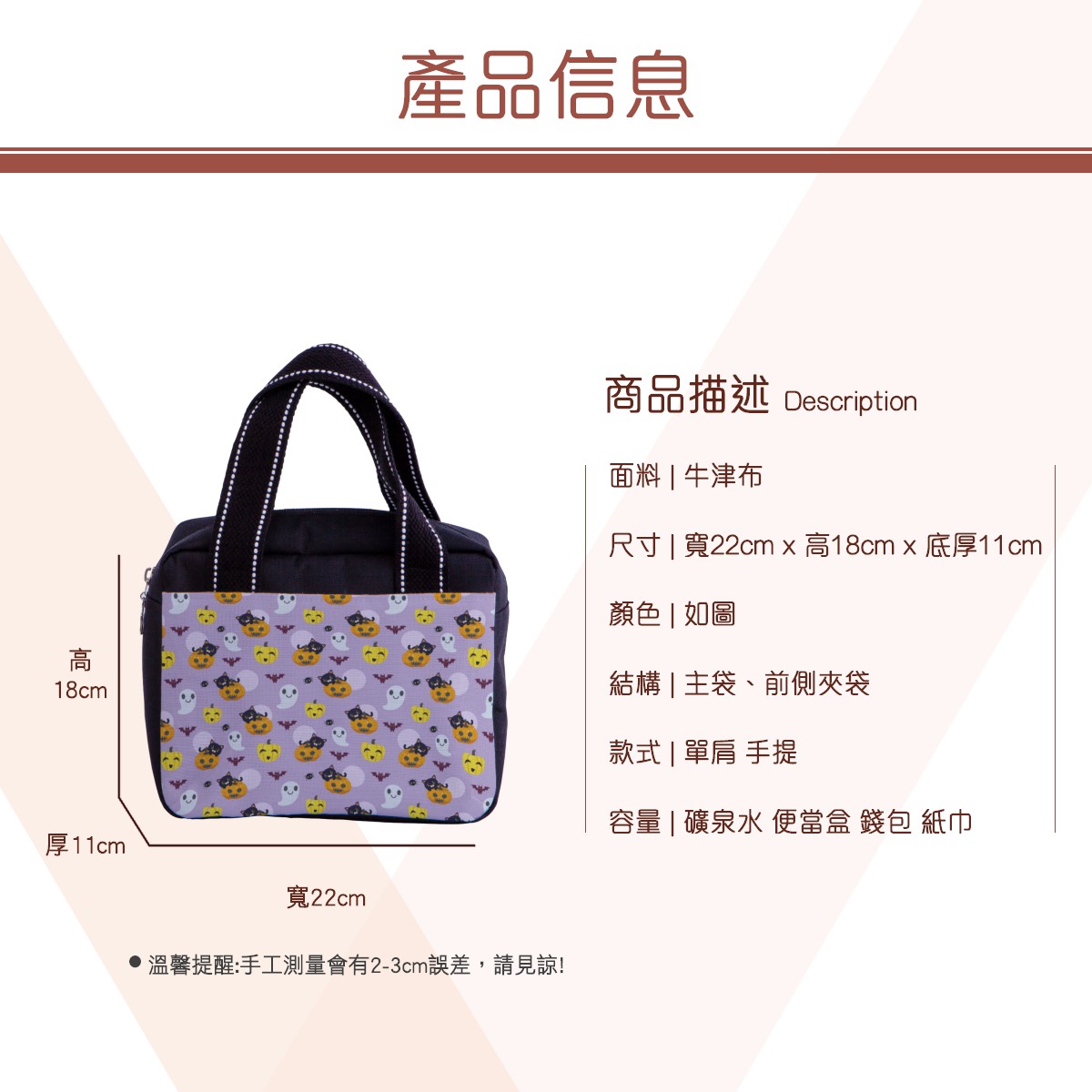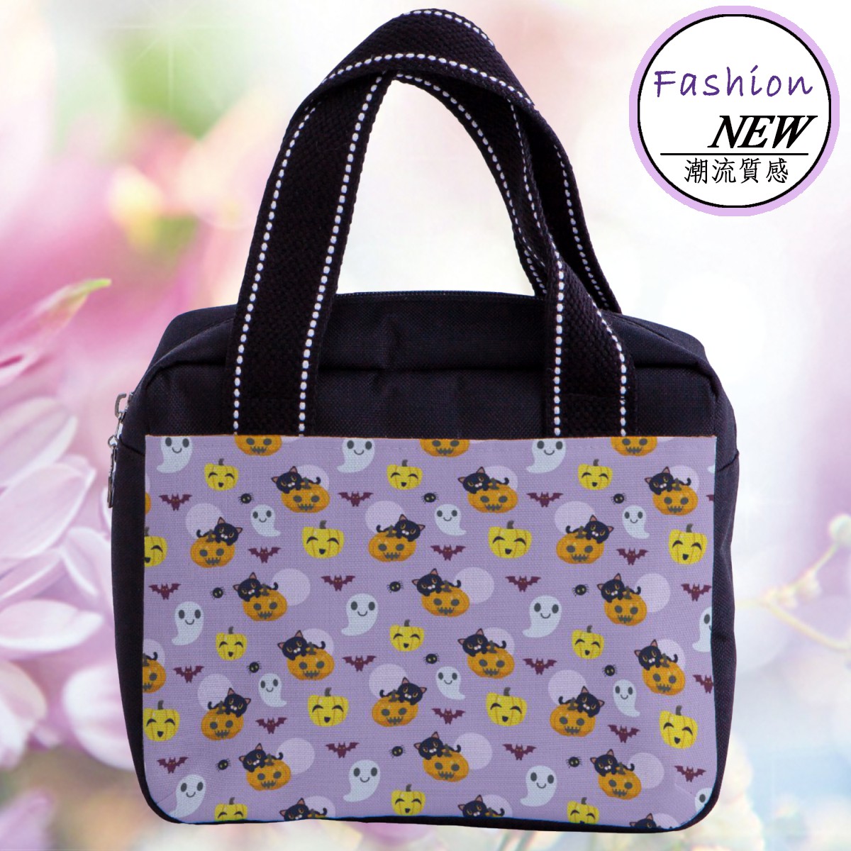南瓜上貓和蝙蝠多功能午餐袋材料包