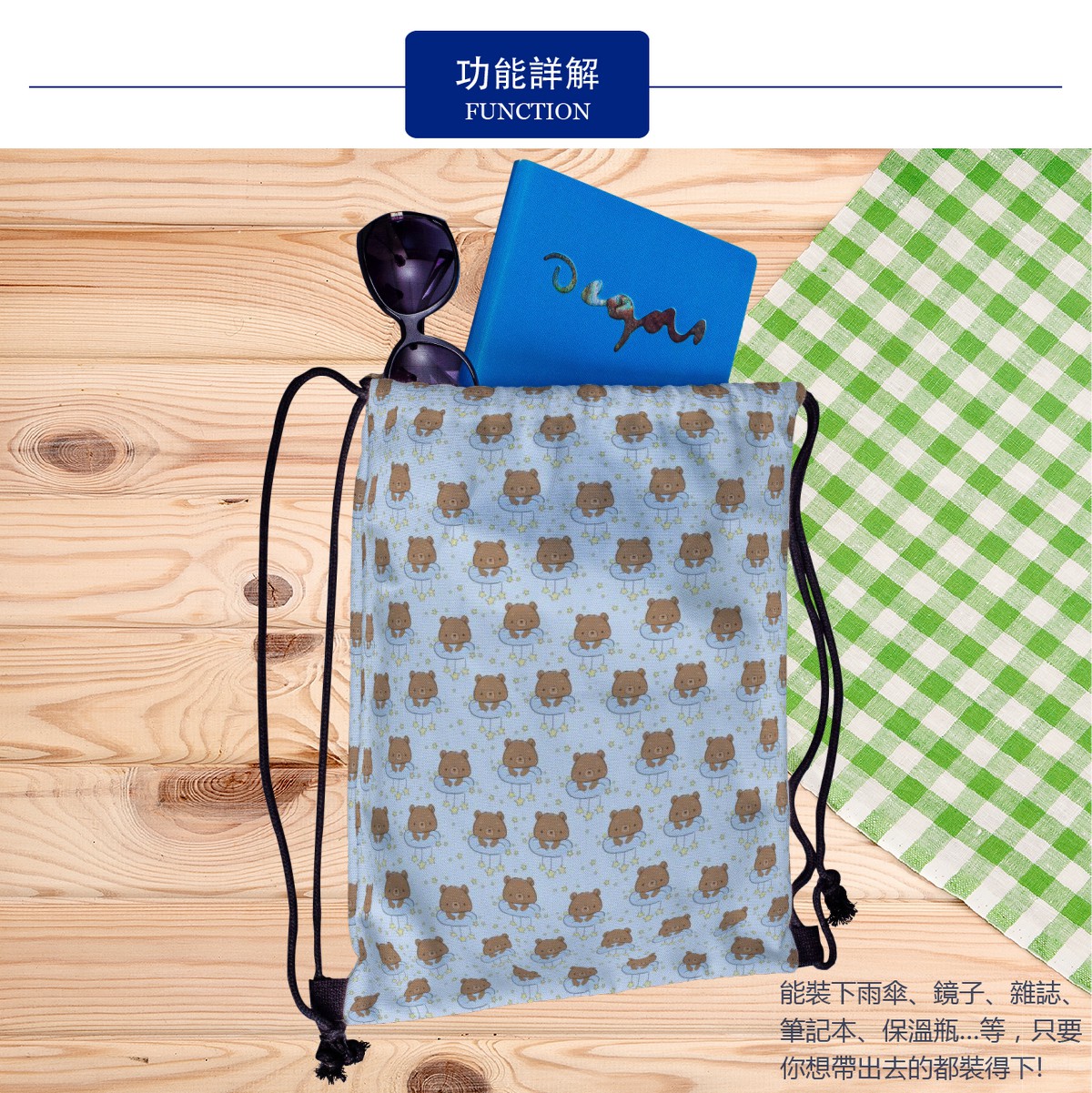 星星抱枕熊帆布束口背包材料包