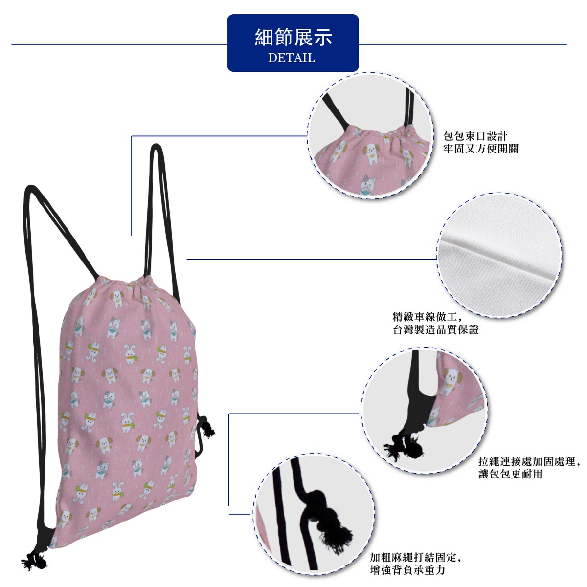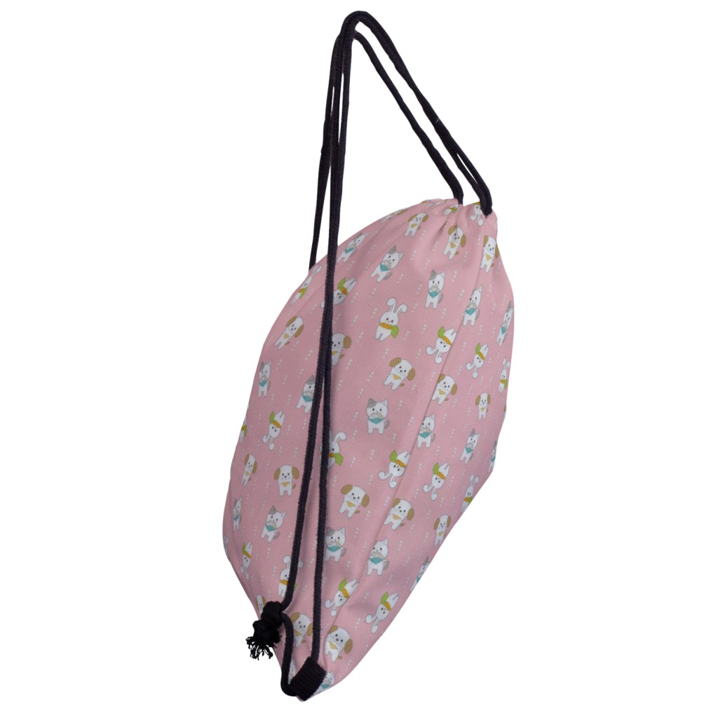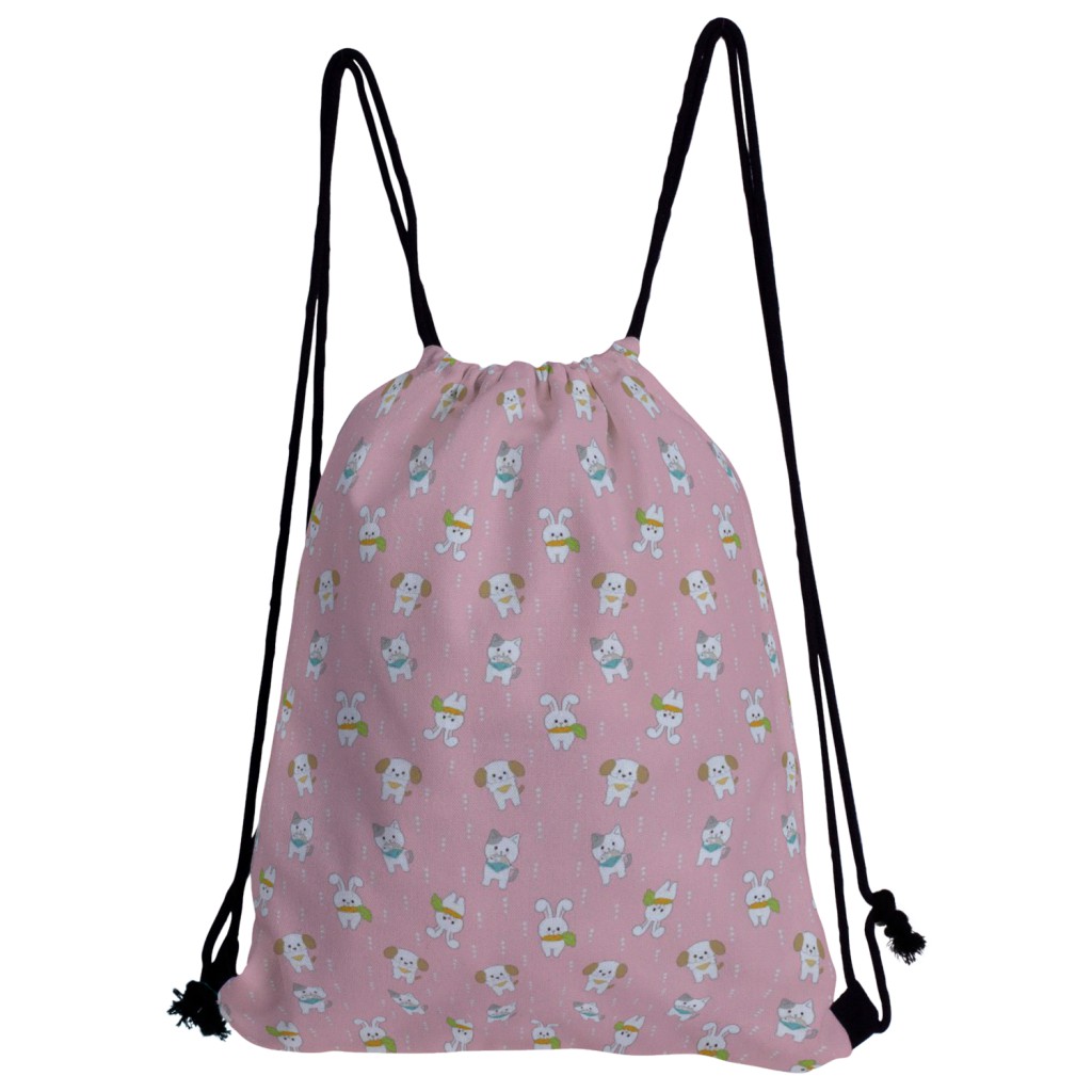 可愛貓和兔帆布束口背包材料包