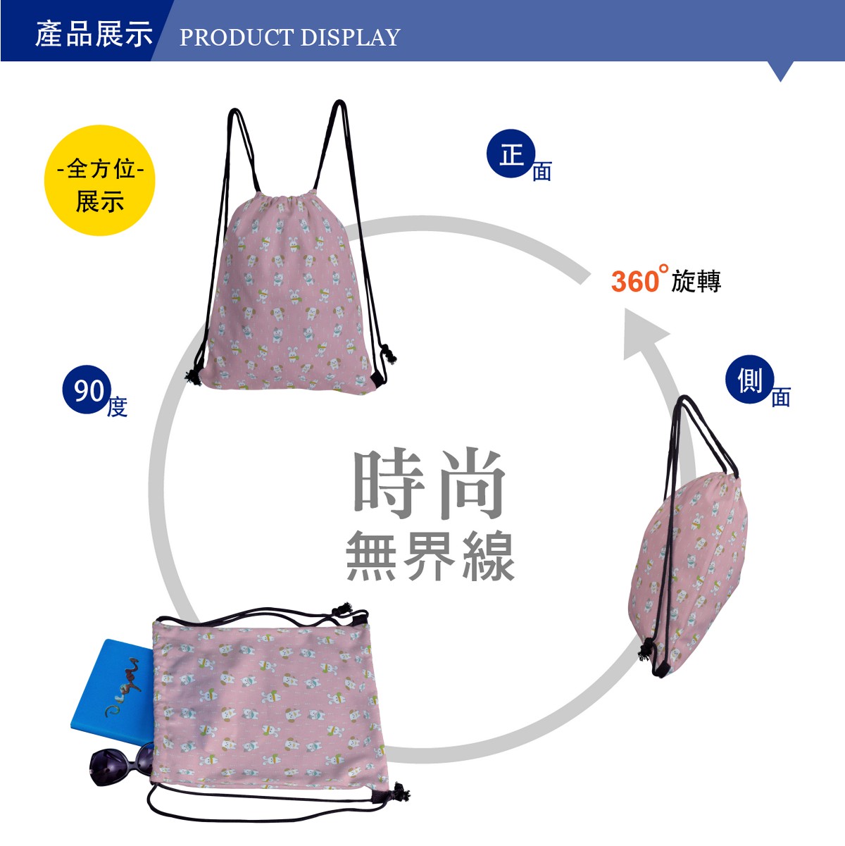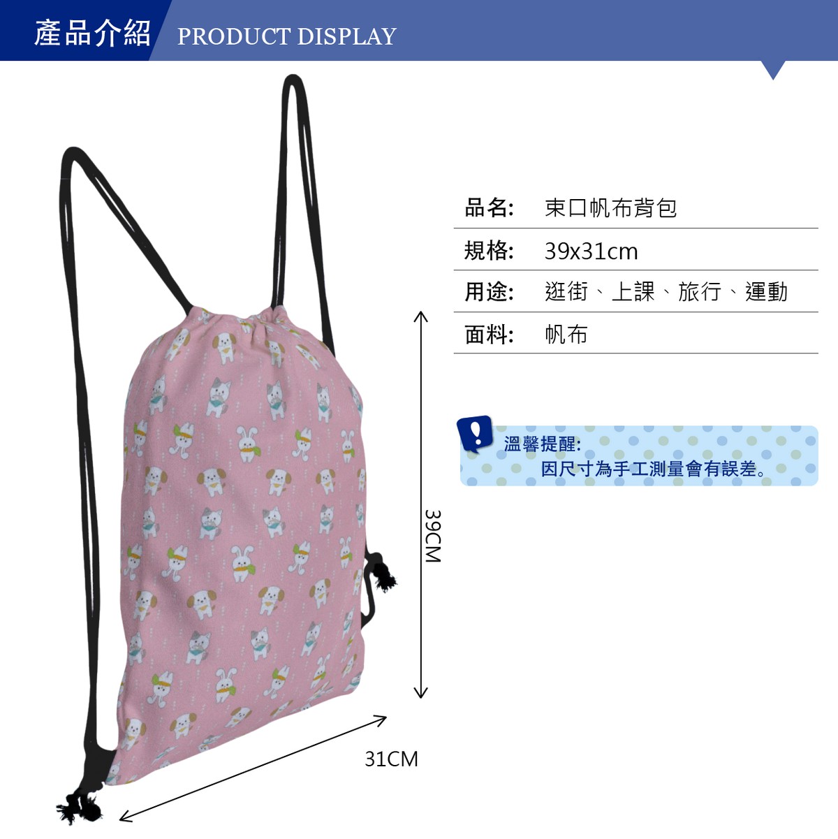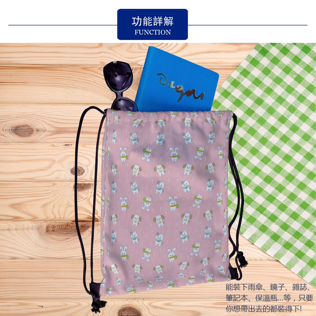 可愛貓和兔帆布束口背包材料包