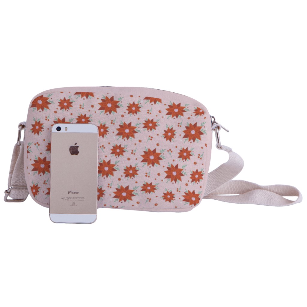 粉紅底聖誕紅大容量單肩包材料包